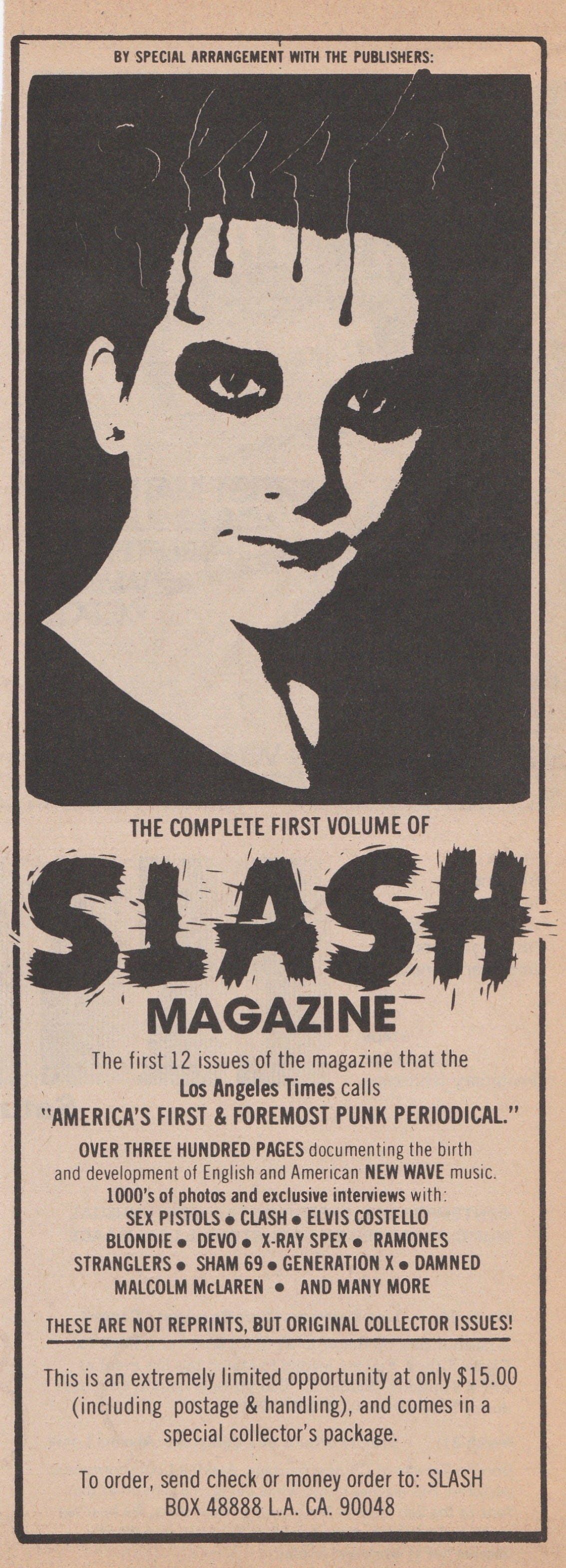 Slash Magazine mail-order ad (1979) -